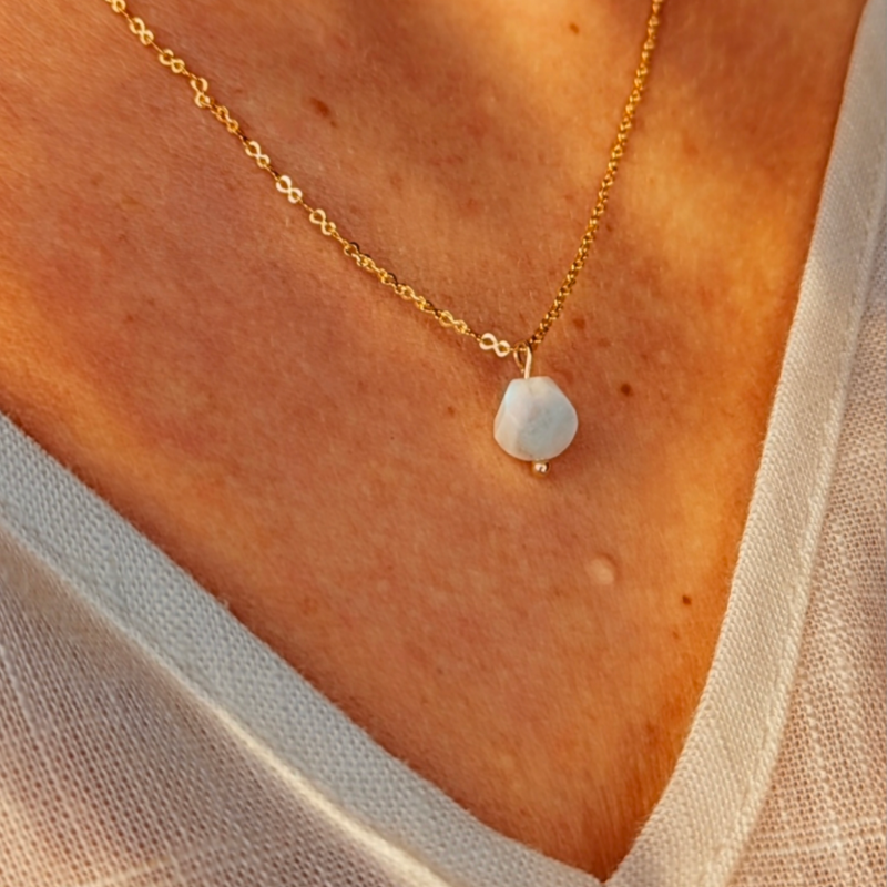 Das vergoldete Messing, sowie auch meine Edelsteinperlen und Süßwasserperlen kommen aus einer kleinen Manufaktur aus Indien. Dort unterstütze ich den Hersteller direkt und zahle faire Preise ohne Zwischenhändler.