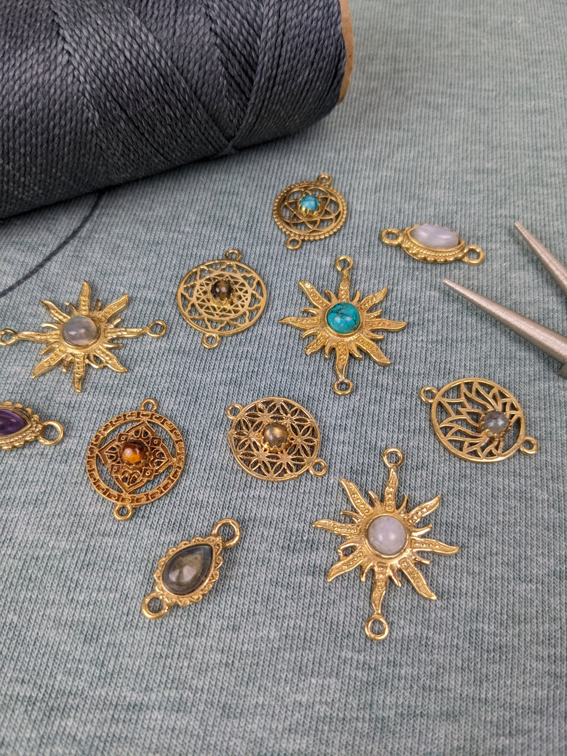 🏵️Meine Messingperlen und Ornamente beziehe ich aus Indien, direkt von einer kleinen Messingfabrik, die alles in Handarbeit herstellt und wo ich ohne Zwischenhändler einen fairen Preis zahle. Mein restliches Material beziehe ich von kleinen Unternehmen aus Deutschland.
